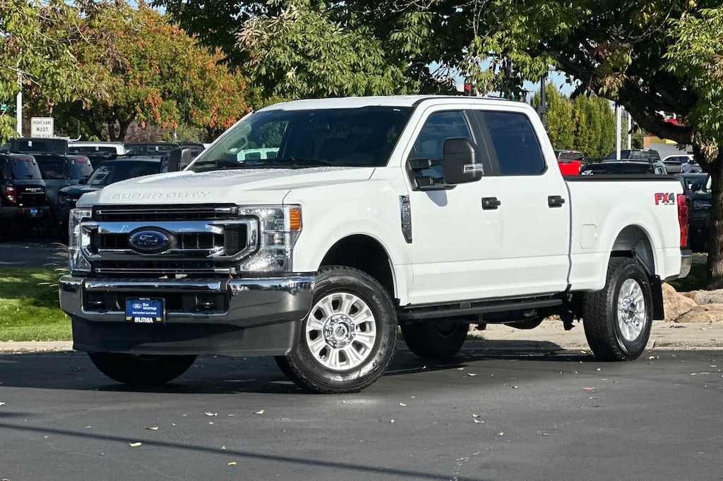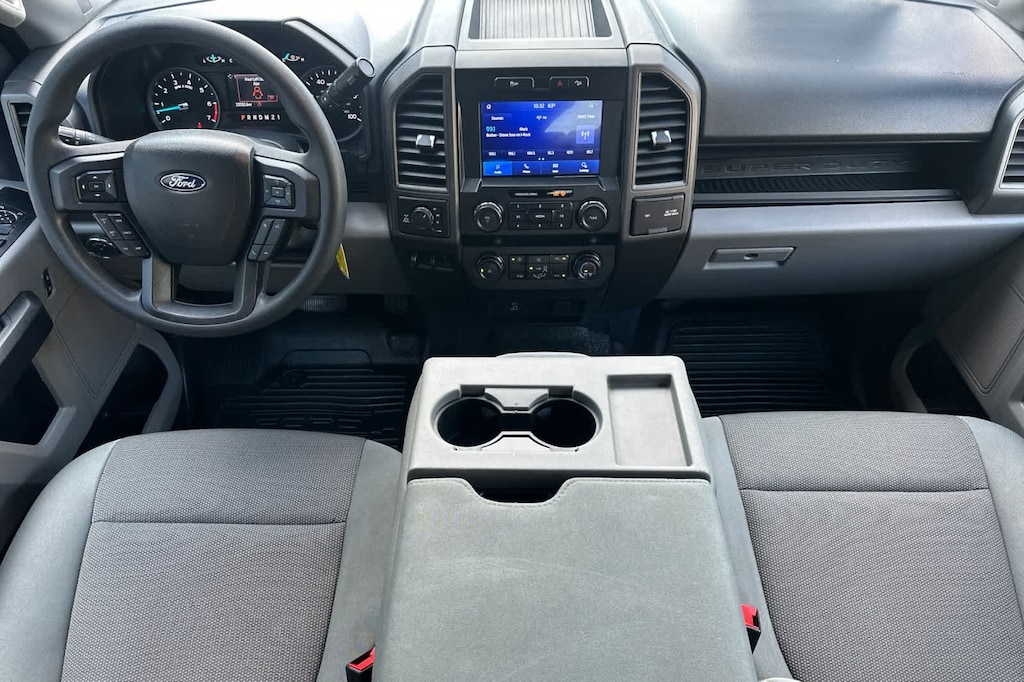STX APPEARANCE PACKAGE STX fender vent badge, Bright Chrome Hub Covers & Center Ornaments, Chrome Front Bumper, Chrome Rear Step Bumper, Steering Wheel-Mounted Cruise Control, Tires: LT275/65Rx18E BSW A/S, Spare may not be the same as road tire, Wheels: 18 Sparkle Silver Painted Cast Aluminum, bright hub covers/center ornaments, Bright Chrome Grille, POWER EQUIPMENT GROUP Deletes passenger-side lock cylinder, upgraded door trim panel, Accessory Delay, Advanced Security Pack, SecuriLock Passive Anti-Theft System (PATS) and inclination/intrusion sensors, Power Locks, Remote Keyless Entry, Trailer Tow Mirrors w/Power Heated Glass, manual folding, manually telescoping, heated convex spotter mirror and integrated clearance lamps and turn signals, Power Front & Rear Seat Windows, 1-touch up/down driver/passenger window, Power Tailgate Lock, SYNC 3 COMMUNICATIONS & ENTERTAINMENT SYSTEM enhanced voice recognition, 8 LCD capacitive touch screen in center stack w/swipe capability, pinch-to-zoom capability included w/available voice-activated touchscreen navigation system, 4.2 productivity screen in IP cluster, AppLink, 911 Assist, Apple CarPlay® and Android Auto® capability and 2 smart charging USB-C ports, 110V/400W Outlet, 1 in-dash mounted outlet, ELECTRONIC-LOCKING W/3.73 AXLE RATIO, TIRES: LT275/70RX18E BSW Automatic Transmission (4) Spare may not be the same as road tire, FIXED REAR-WINDOW W/DEFROST, ENGINE: 6.2L 2-VALVE SOHC EFI NA V8 FLEX-FUEL (STD). 2022 Ford Super Duty F-250 Pickup with Oxford White exterior and Medium Earth Gray interior features a 8 Cylinder Engine with 385 HP at 5750 RPM*.