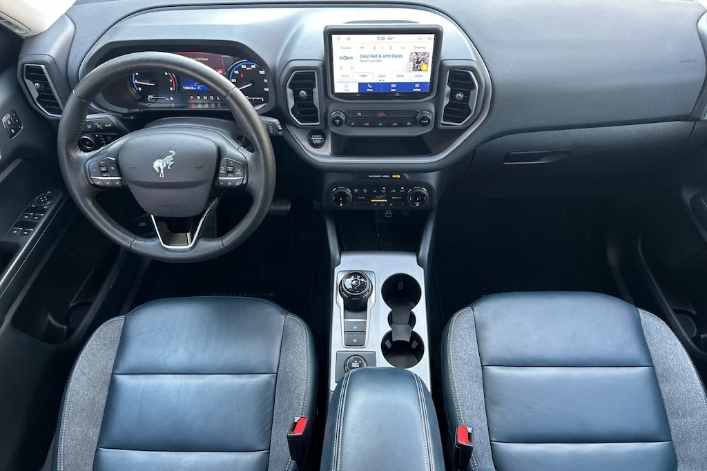 TECH PACKAGE Bang & Olufsen Sound System, 10 speakers and subwoofer, Universal Garage Door Opener (UGDO), Wireless Charging Pad, HD Radio, CARGO MANAGEMENT SYSTEM shelf, divider and table, ENGINE: 1.5L ECOBOOST auto start-stop technology (STD). 2023 Ford Bronco Sport with Shadow Black exterior and Navy Pier interior features a 3 Cylinder Engine with 181 HP at 6000 RPM*.