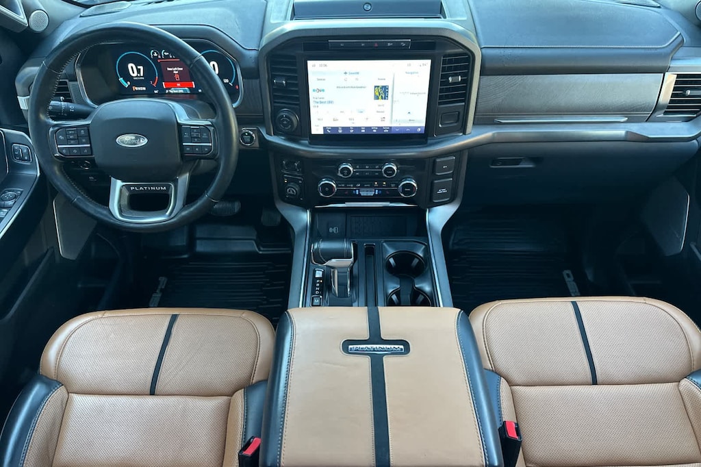EQUIPMENT GROUP 701A HIGH Ford BlueCruise 1.0, forward sensing system, Active Park Assist 2.0, 360 Degree Camera, trailer reverse guidance, Radio: B&O Unleashed Sound System by Bang & Olufsen, HD Radio and 18 speakers including subwoofer, Pro Trailer Backup Assist & Pro Trailer Hitch Assist, Bed Utility Package, BoxLink, 4 premium locking cleats, LED Box Lighting, Tailgate Step w/Tailgate Work Surface, Power Tailgate, TWIN PANEL MOONROOF, ENGINE: 3.5L V6 ECOBOOST, TOUGH BED SPRAY-IN BEDLINER, SOFT FOLDING TONNEAU PICKUP BOX COVER, TRANSMISSION: ELECTRONIC 10-SPEED AUTOMATIC selectable drive modes: normal, ECO, sport, tow/haul, slippery, deep snow/sand and mud/rut (STD). 2023 Ford F-150 with Carbonized Gray exterior and Carmelo interior features a V6 Cylinder Engine with 400 HP at 6000 RPM*.