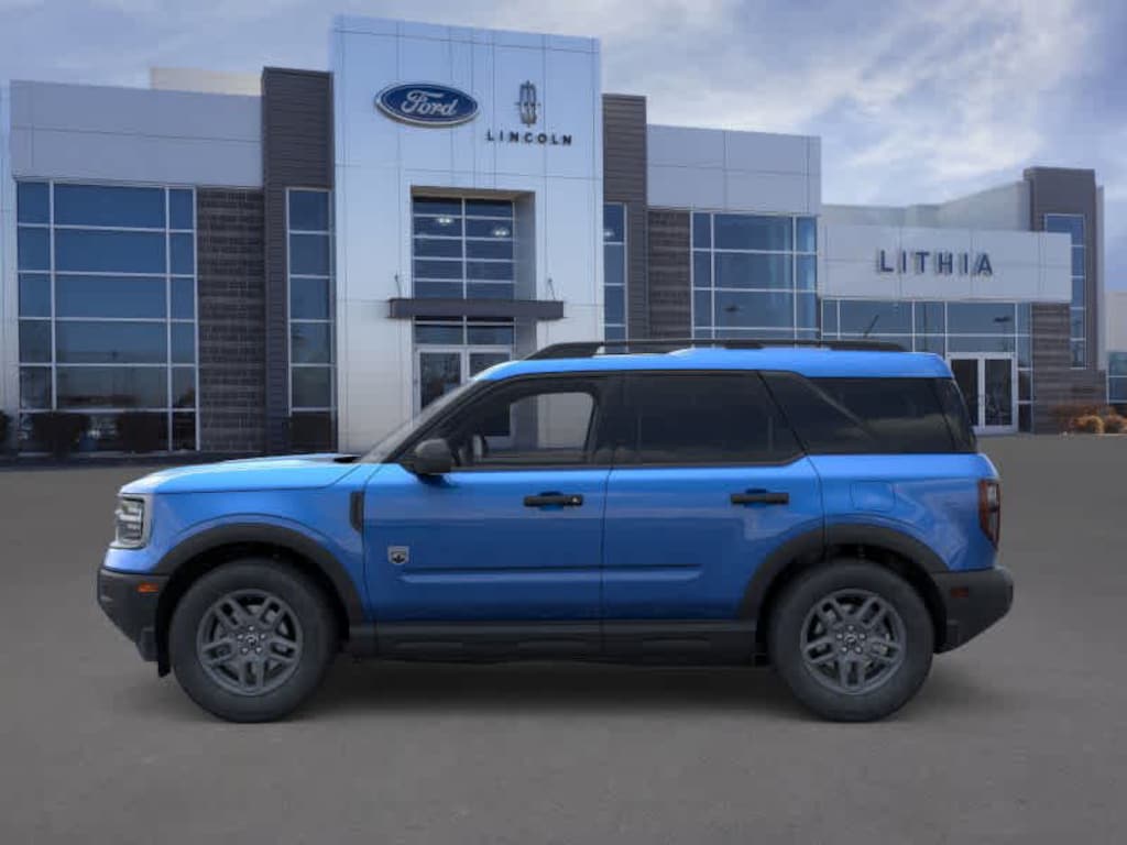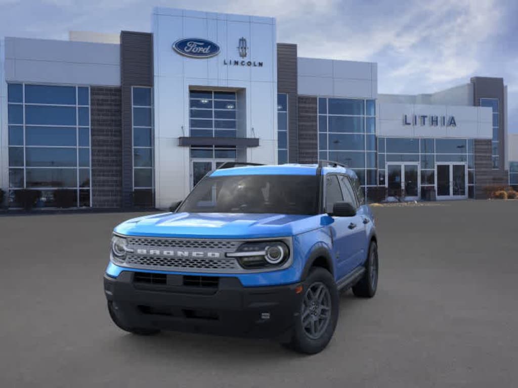 CONVENIENCE PACKAGE Heated 8-Way Power Drivers Seat, (Fore/aft, up/down, recline, lumbar), Front Driver/Passenger Seat Back Map Pockets, Universal Garage Door Opener (UGDO), Premium Wrapped Steering Wheel, LED Fog Lamps. 2025 Ford Bronco Sport with Velocity Blue exterior and Medium Light Smoked Truffle interior features a 3 Cylinder Engine with 181 HP at 6000 RPM*.