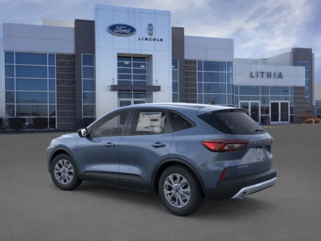 COLD WEATHER PACKAGE Heated Front Row Seats, Heated Sideview Mirrors, Remote Starter System, Heated Steering Wheel, MINI SPARE WHEEL T155/70D17 spare tire and jack, ENGINE: 1.5L ECOBOOST auto start-stop technology (STD). 2025 Ford Escape with Vapor Blue exterior and Ebony interior features a 3 Cylinder Engine with 180 HP at 6000 RPM*.