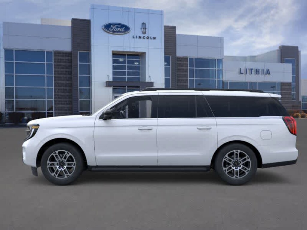 EQUIPMENT GROUP 202A HIGH PACKAGE Ford Split Gate, power upper liftgate and power lower tailgate, Wheels: 20 Carbonized Gray Bright Machined Aluminum, 360-Degree Zone Lighting, 110V/400W AC Power Outlet, 1 console outlet and one cargo area outlet, BlueCruise Equipped, 90-day trial, Not available to military sales, Universal Garage Door Opener, Power Panoramic Vista Roof w/Power Sunshade, Rain Sensing Wipers, Power Tilt/Telescopic Steering Wheel w/Memory, Memory Driver Seat, Tires: P275/60R20 AT, Ford Co-Pilot360 Active 2.0, Driver State Detection, Intersection Assist, pre-collision assist w/autonomous emergency braking, pedestrian detection, forward collision warning and dynamic brake support, Front Side Laminated Glass, Wireless Charging Pad, Located in media hub, 2nd Row Power-Folding. 2025 Ford Expedition Max with Space Silver exterior and Space Gray interior features a V6 Cylinder Engine with 400 HP at 5200 RPM*. Approx. Original Base Sticker Price: $74,700*.