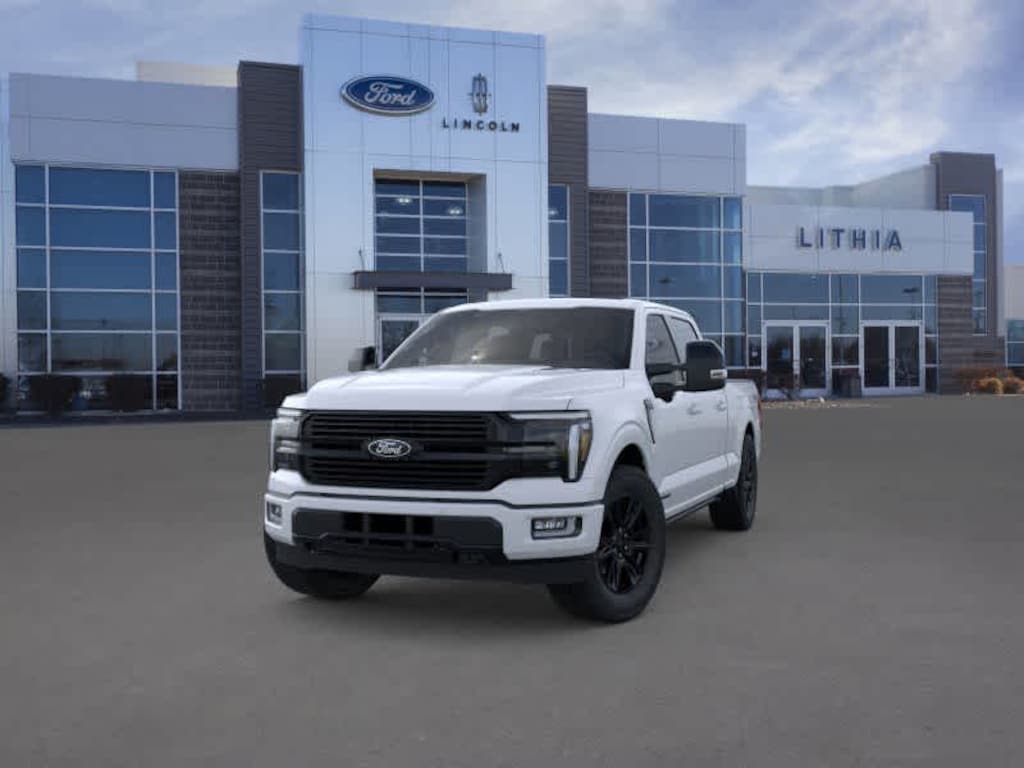 EQUIPMENT GROUP 702A HIGH Twin Panel Moonroof, Heads-Up Display, Radio: B&O Unleashed Sound System by Bang & Olufsen, HD Radio and 14 speakers including subwoofer, ENGINE: 3.5L POWERBOOST FULL-HYBRID V6 Pro Power Onboard 7.2KW and removes 36 gallon fuel tank, GVWR: 7,400 lbs Payload Package, Electronic Locking w/3.73 Axle Ratio, FX4 OFF-ROAD PACKAGE Off-Road Tuned Front Shock Absorbers, Skid Plates, fuel tank, transfer case and front differential, Monotube Rear Shocks, Rock Crawl Mode, 4x4 FX4 Off-Road Bodyside Decal, Hill Descent Control, Tray Style Floor Liner, POWER TELESCOPING/GLASS/FOLDING TRAILER TOW MIRRORS heat, turn signal, memory, auto-dimming feature (drivers side) and chrome skull caps, LED Sideview Mirror Spotlights, high-intensity LED security approach lamps. 2025 Ford F-150 with Space White exterior and Black interior features a V6 Cylinder Engine with 430 HP at 6000 RPM*. Approx. Original Base Sticker Price: $86,400*.