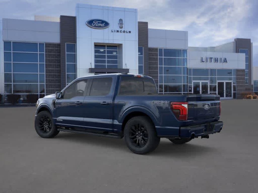 EQUIPMENT GROUP 502A HIGH Ambient Lighting - Ice Blue Color Only, Wheels: 20 Chrome-Like PVD, Radio: B&O Unleashed Sound System by Bang & Olufsen, HD Radio and 14 speakers including subwoofer, 2nd Row Heated Seats, Mobile Office Package, Wireless Charging, Partitioned Lockable Rear Storage, Console Worksurface, 6 Extended Angular Bright Anodized Step Bar, Power-Sliding Rear Window, Heads-Up Display, Illuminated Driver & Passenger Visors, covered mirrors, Tires: 275/60R20 All-Terrain, ENGINE: 3.5L POWERBOOST FULL-HYBRID V6 Pro Power Onboard 2.4KW and removes 36 gallon fuel tank, GVWR: 7,400 lbs Payload Package, Electronic Locking w/3.73 Axle Ratio, TWIN PANEL MOONROOF. 2025 Ford F-150 with Antimatter Blue exterior and Black interior features a V6 Cylinder Engine with 430 HP at 6000 RPM*. Approx. Original Base Sticker Price: $78,700*.
