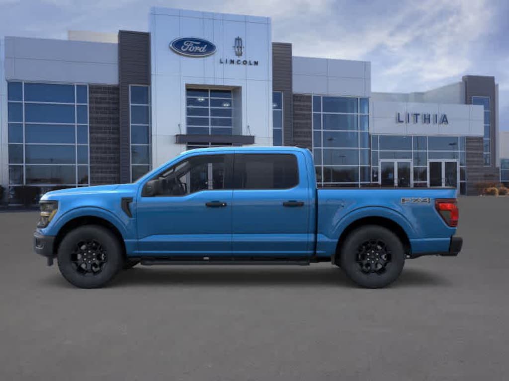 EQUIPMENT GROUP 201A FX4 Argent Front/Rear Bumper, FX4 Box Decal, Off-Road Tuned Front Shock Absorbers, Wheels: 18 Black Painted Aluminum, Dual Exhaust w/Black Tips, LED Fog Lamps w/LED Cornering Lamp, Tray Style Floor Liner, 6 Black Running Boards, Skid Plates, fuel tank, transfer case and front differential, STX Badge in Fender Vent, Monotube Rear Shocks, Tires: LT265/70R18 BSW Automatic Transmission, MOBILE OFFICE PACKAGE Console Worksurface, 400W Cab & Bed Outlets, TRANSMISSION: ELECTRONIC 10-SPEED AUTOMATIC SelectShift w/progressive range select and selectable drive modes: normal, ECO, sport, tow/haul, slippery, deep snow/sand and mud/rut (STD). 2025 Ford F-150 with Atlas Blue exterior and Black/Bronze interior features a V6 Cylinder Engine with 325 HP at 5000 RPM*. Approx. Original Base Sticker Price: $55,300*.