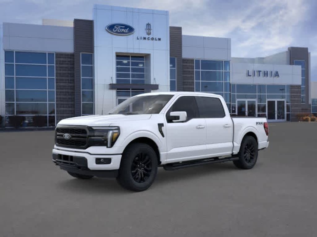 EQUIPMENT GROUP 502A HIGH Ambient Lighting - Ice Blue Color Only, Wheels: 20 Chrome-Like PVD, Radio: B&O Unleashed Sound System by Bang & Olufsen, HD Radio and 14 speakers including subwoofer, 2nd Row Heated Seats, Mobile Office Package, Wireless Charging, Partitioned Lockable Rear Storage, Console Worksurface, 6 Extended Angular Bright Anodized Step Bar, Power-Sliding Rear Window, Heads-Up Display, Illuminated Driver & Passenger Visors, covered mirrors, Tires: 275/60R20 All-Terrain, TWIN PANEL MOONROOF, TRANSMISSION: ELECTRONIC 10-SPEED AUTOMATIC SelectShift w/progressive range select and selectable drive modes: normal, ECO, sport, tow/haul, slippery, deep snow/sand and mud/rut (STD). 2025 Ford F-150 with Star White Metallic Tri-Coat exterior and Black interior features a V6 Cylinder Engine with 400 HP at 6000 RPM*. Approx. Original Base Sticker Price: $79,400*.