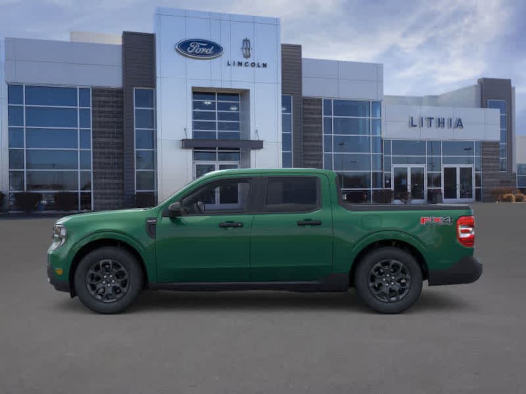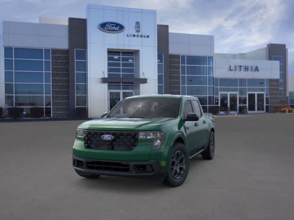 XLT LUXURY PACKAGE Remote Start System, Soft Vinyl Wrapped Heated Steering Wheel, 400W Inverter w/USB Console Rear, Cab and bed includes cubby cover, Heated Mirror w/Painted Black Skull Caps, Heated Seats, 8-way power driver and 6-way manual passenger seats, LED Box Lighting, FX4 OFF-ROAD PACKAGE FX4 off-road box decal (replaces tailgate AWD badge), off-road screen in instrument cluster and rotary gear shift dial which includes select drive modes: slippery, ECO, normal, sport, sand, tow/haul and off-road, Hill Descent Control, Conventional 17 Spare Tire (215/70R17), Skid Plates, Wheels: 17 Unique Ebony Painted Aluminum, Exposed Front Tow Hooks, Upgraded Cooling Fan, Higher Capacity Radiator, Tires: 17 Automatic Transmission, Performance Suspension, FORD CO-PILOT360 1.0 Evasive Steering Assist, Intersection Assist, AEB oncoming, Cross Traffic Brake Assist, BLIS w/Cross-Traffic Alert, Rear Parking Sensors, Power Glass Manual-Folding Mirrors, blind spot information system, Lane-Keeping System, Lane-Keeping Alert, lane-keeping aid and Driver Alert, 4K TOW PACKAGE Trailer Hitch (Class III) 2 Receiver, 4-pin and 7-pin connector, Conventional 17 Spare Tire (215/70R17), Transmission Oil Cooler, Upgraded Cooling Fan, Trailer Brake Controller, EQUIPMENT GROUP 302A Engine: 2.0L EcoBoost, 3.63 Axle Ratio, Transmission: 8-Speed Automatic. 2025 Ford Maverick with Eruption Green exterior and Navy Pier/Aspen Gray interior features a 4 Cylinder Engine with 191 HP at 5600 RPM*.