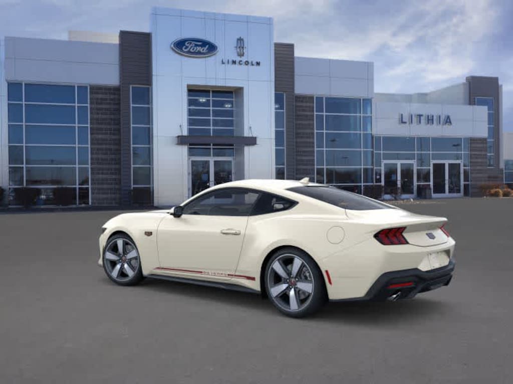 60TH ANNIVERSARY PACKAGE Mirror caps are painted body-color when Wimbledon White (N4) exterior paint is ordered, Anniversary Special Edition Badge, Wheels: 20 x 9 Bright Machined Aluminum, Tires: 20, Silver Painted Mirror Caps, Painted High Gloss Black Honeycomb Grille, Headlamps w/Black Bezels, Spoiler Delete, EQUIPMENT GROUP 401A HIGH PACKAGE Premier Trim w/Color Accent Group, accent stitched center console lid and shifter boot, 5-piece leather-wrapped steering wheel w/chrome bezel, unique color-accented door-trim and seat belt w/color accent stripes (black accent stripe/red background w/carmine red interior (53) or space gray accent stripe/black background w/black onyx and space gray interiors (5W/5H)), Instrument Panel w/Accent Stitch, Illuminated Door-Sill Scuff Plates, Security Package, Active Anti-Theft System, Locking Center Console, Wheel Locking Kit, 3.55 Limited Slip Rear Axle, Ford Co-Pilot360 Assist+, Pre-Collision Assist w/Automatic Emergency Braking, Evasive Steering Assist, Connected Navigation, Navigation services require SYNC4 and FordPass Connect (optional on select vehicles), B&O SOUND SYSTEM BY BANG & OLUFSEN W/12 SPEAKERS subwoofer in trunk, TRANSMISSION: 10-SPEED AUTOMATIC paddle shifters and remote rev, 3.15 Limited-Slip Rear-Axle, Leather-Wrapped Shift Knob, Remote Start System, ENGINE: 5.0L TI-VCT V8 stop/start system and Port Fueled Direct Injection (PFDI) (STD). 2025 Ford Mustang with Wimbledon White exterior and Black Onyx interior features a 8 Cylinder Engine with 480 HP at 7150 RPM*.