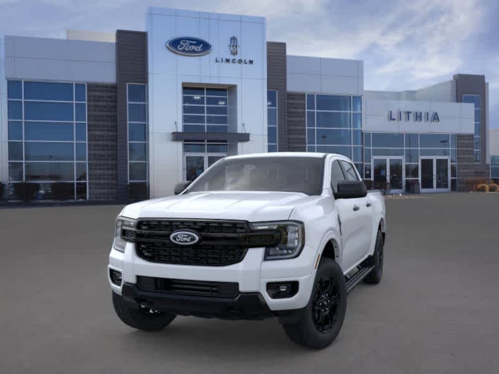 ADVANCED TOWING PACKAGE PLUS TECHNOLOGY PACKAGE Trailer Tow Package, towing capability up to TBD lbs and 4-pin/7-pin wiring harness, Class IV Trailer Hitch Receiver, 360-Degree Camera, Pro Trailer Backup Assist, Trailer Brake Controller, Rear Parking Sensors w/Trailer Guidance, Adaptive Cruise Control, speed sign recognition, Front Parking Sensors, EQUIPMENT GROUP 301A HIGH Power-Sliding Rear Window, Dual-Zone Electronic Climate Control (DEATC), 12 Display in Center Stack, FX4 OFF-ROAD PACKAGE FX4 Selectable Drive Modes, mud/ruts and sand, Exposed Steel Bash Plate, engine and transfer case shield and fuel tank guard, Electronic-Locking Rear Differential, Off-Road Tuned Shocks, Off-Road Screen in Center Stack, Trail Control, FX4 Off-Road Box Decal, BLACK APPEARANCE PACKAGE Black Center Bar & Surround Grille, Unique Carpet Mats, Wheels: 18 Black Painted, Tires: 18, Body-Color Painted Front Fascia, black lower valance, Front & Rear Black Ford Ovals, Black Rear Bumper, Painted Body-Color Wheel Lip Molding, BLACK RUNNING BOARDS, TRANSMISSION: ELECTRONIC 10-SPEED AUTOMATIC selectable drive modes: normal, ECO, sport, tow/haul and slippery (STD). 2025 Ford Ranger with Oxford White exterior and Ebony interior features a 4 Cylinder Engine with 270 HP at 5500 RPM*.