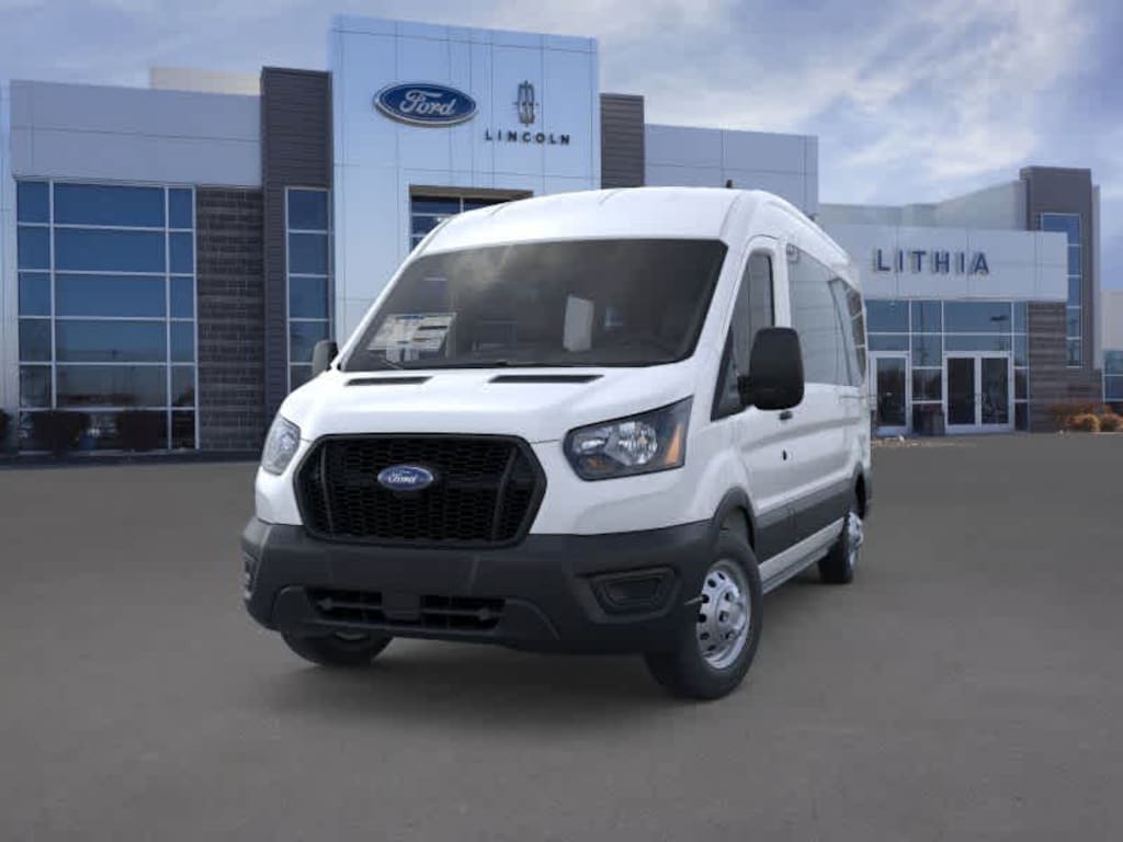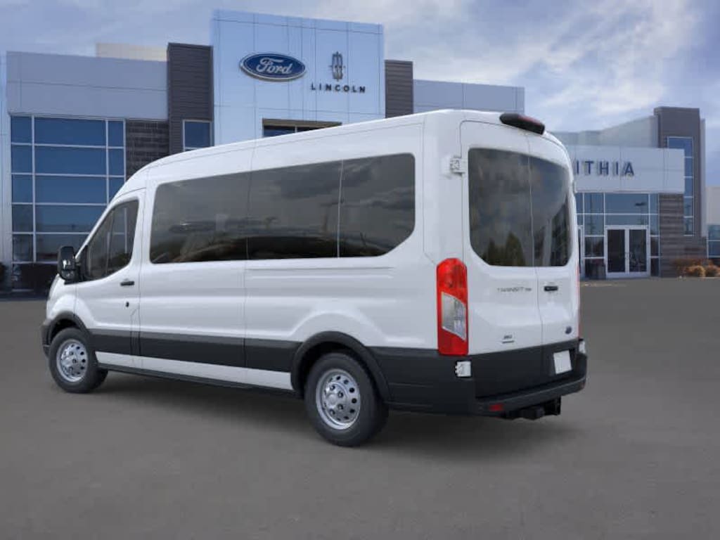 ENGINE: 3.5L ECOBOOST V6, 15-PASSENGER SEATS 1st row: 2 seats, 2nd row: 3 seats, 3rd row: 3 seats, 4th row: 3 seats and 5th row: 4 seats, Dual AGM Batteries (70 Amp-hr Each), PRIVACY GLASS Provides protection of vehicle occupant(s) and occupant personal belongings, The glass also provides occupant comfort by helping to reduce vehicle cool-down time, Rear-Window Defroster, HEAVY-DUTY TRAILER TOW PACKAGE Deletes rear tow hook, 4/7 pin connector assembly and rear jumper and relay system for backup/B+/running lights, This package does not include a Trailer Brake Controller (67D), If a TBC is required, it must be added to initial order, Neither a Ford nor aftermarket TBC can be added later, Frame Mounted Hitch Receiver, Tow/Haul Mode w/Trailer Wiring Prov, PASSENGER RUNNING BOARD Covers the B-C pillar passenger-side, REVERSE SENSING SYSTEM, RADIO: AM/FM STEREO W/SYNC 3 4.0 multi-function display, Bluetooth® and dual USB ports, SYNC 3 Communications & Entertainment System, 911 Assist, VHR, SYNC Services, AppLink, Bluetooth®, USB port and auxiliary input jack, TRANSMISSION: 10-SPD AUTOMATIC W/OD & SELECTSHIFT auxiliary transmission oil cooler (STD). 2025 Ford Transit Passenger Wagon with Oxford White exterior and Dark Palazzo Gray interior features a V6 Cylinder Engine with 310 HP at 5000 RPM*.