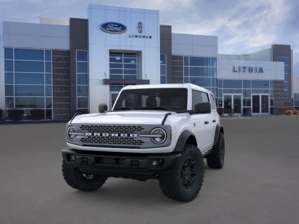 EQUIPMENT GROUP 334A LUX PACKAGE Rear Parking Sensors, Pro Power Onboard - 400W, Back side of center floor console, Dr & Pass Illuminated Sliding Visor Vanity Mirrors, Evasive Steering Assist, Heated Steering Wheel, Information on Demand Panel, Dual-Zone Electronic Automatic Temperature Control, air conditioning, Ford Co-Pilot360, Auto High-Beam Headlamps, Pre-Collision Assist w/Automatic Emergency Braking, pedestrian detection, forward collision warning and dynamic brake support, Blind Spot Information System (BLIS), Cross-Traffic Alert, Rear View Camera, backup assist grid lines, Lane-Keeping System, Lane-Keeping Alert, Lane-Keeping Aid and Driver Alert, Ambient Footwell Lighting, 2-Door Intelligent Access w/Lock/Unlock, Intelligent Access will also lock/unlock the swing gate, Dual Smart, ENGINE: 2.7L ECOBOOST V6 GVWR: 6,180 lbs, PAINTED HARD TOP Hard Top Sound Deadening Headliner, Rear-Window Defroster & Washer, TRANSMISSION: 10-SPEED AUTOMATIC trail control, trail turn assist and trail one-pedal driving, 4.46 Axle Ratio. 2026 Ford Bronco with Oxford White exterior and Black Onyx interior features a V6 Cylinder Engine with 315 HP at 5500 RPM*.