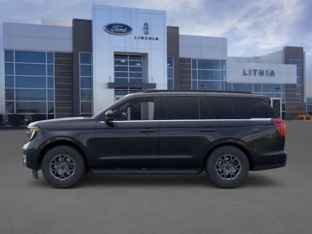 EQUIPMENT GROUP 202A TOURING PACKAGE 4-Way Manual Head Restraints, Ford Split Gate, Open on approach, power upper liftgate and power lower tailgate, Ford Co-Pilot360 Active 2.0, Intersection Assist, 360-Degree Zone Lighting, Pro Power Onboard - 400W, 1 console and 1 cargo area, Active Air Dam, Rain Sensitive Windshield Wipers, Power Tilt/Telescopic Steering Wheel w/Memory, Memory Driver Seat, Front Side Laminated Glass, 2nd Row Power-Folding Captains Chairs, 7-passenger seating, armrests and tip-and-slide, USB Ports, 1 C + C in cargo area, Flex Powered Console, Heated Steering Wheel, Dual Power-Folding Sideview Mirrors w/Autofold, power and heated glass, ground illuminator and driver/passenger side memory, 3rd Row Vinyl Seats, manual-folding head restraints, 4-Door Intelligent Access, POWER PANORAMIC VISTA ROOF W/POWER SUNSHADE third row power folding head restraints, The remote button is located in the overhead console, 2ND ROW PWR-FOLDING 40/20/40 ACTIVEX-TRIMMED BENCH SEAT tip-and-slide, BLUECRUISE (EQUIPMENT + 1-YEAR + 90-DAY PLAN) After this initial duration, customers need to purchase a subscription to continue using BlueCruise, See subscription options, pricing, and version details on ford.com/bluecruise. 2026 Ford Expedition with Agate Black exterior and Ultra Dark Space Gray interior features a V6 Cylinder Engine with 400 HP at 5200 RPM*.
