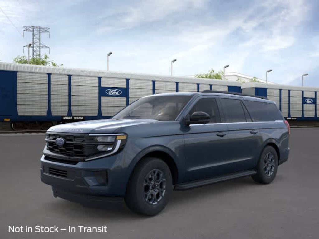 EQUIPMENT GROUP 202A TOURING PACKAGE 4-Way Manual Head Restraints, Ford Split Gate, Open on approach, power upper liftgate and power lower tailgate, Ford Co-Pilot360 Active 2.0, Intersection Assist, 360-Degree Zone Lighting, Pro Power Onboard - 400W, 1 console and 1 cargo area, Active Air Dam, Rain Sensitive Windshield Wipers, Power Tilt/Telescopic Steering Wheel w/Memory, Memory Driver Seat, Front Side Laminated Glass, 2nd Row Power-Folding Captains Chairs, 7-passenger seating, armrests and tip-and-slide, USB Ports, 1 C + C in cargo area, Flex Powered Console, Heated Steering Wheel, Dual Power-Folding Sideview Mirrors w/Autofold, power and heated glass, ground illuminator and driver/passenger side memory, 3rd Row Vinyl Seats, manual-folding head restraints, 4-Door Intelligent Access, POWER PANORAMIC VISTA ROOF W/POWER SUNSHADE third row power folding head restraints, The remote button is located in the overhead console. 2026 Ford Expedition Max with Stone Blue exterior and Ultra Dark Space Gray interior features a V6 Cylinder Engine with 400 HP at 5200 RPM*.