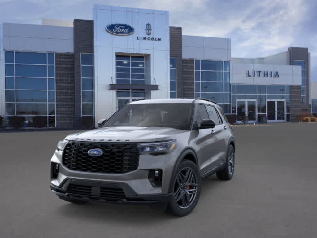 ST-LINE STREET PACK Wheels: 21 Magnetite-Painted Aluminum, Tires: P275/45R21 AS BSW, Performance Brakes, Red Painted Perf Front & Rear Brake Calipers, 18 SPARE WHEEL & JACK KIT 18 spare tire, TRANSMISSION: 10-SPEED AUTOMATIC (STD). 2026 Ford Explorer with Carbonized Gray exterior and Onyx interior features a 4 Cylinder Engine with 300 HP at 5500 RPM*. Approx. Original Base Sticker Price: $50,700*.