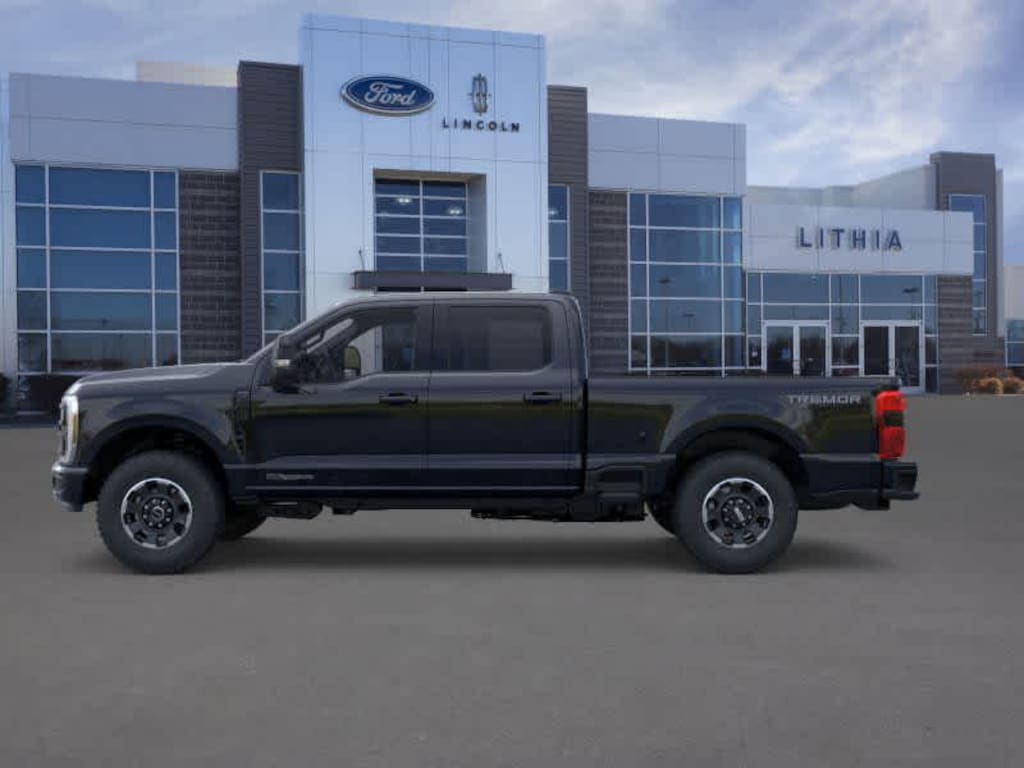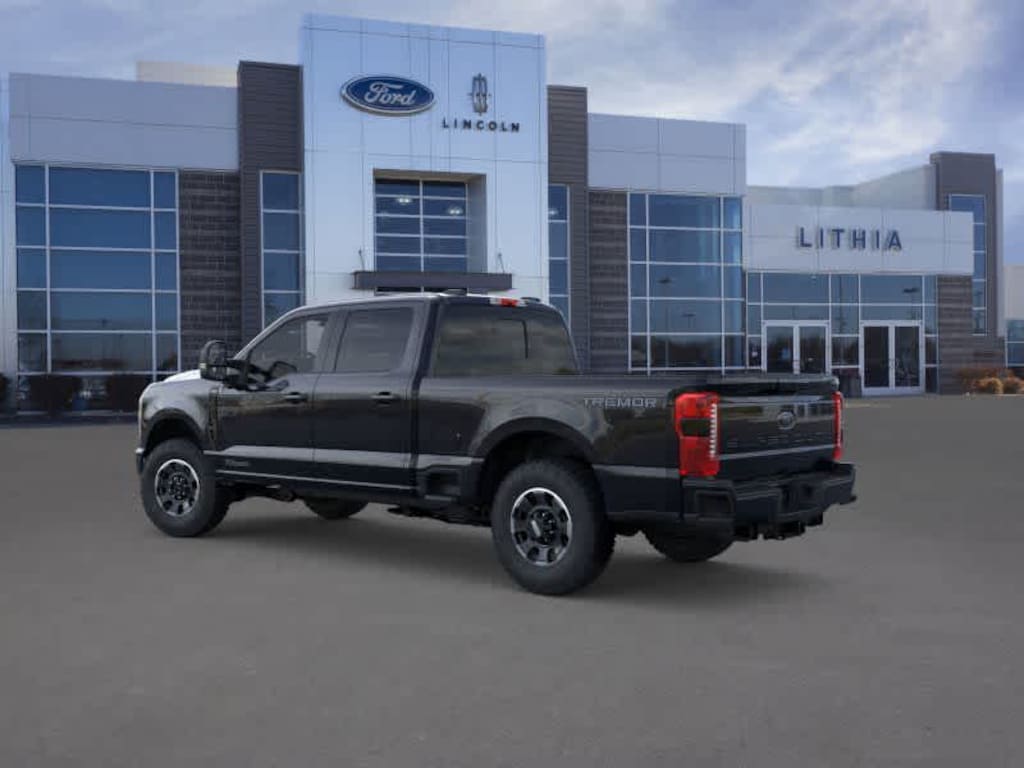 ENGINE: 6.7L 4V OHV POWER STROKE V8 TURBO DIESEL B20 manual push-button engine-exhaust braking and Operator Commanded Regeneration (OCR), 250 Amp Alternator, 34 Gallon Fuel Tank, 3.31 Axle Ratio, Dual AGM 68 AH Battery, TREMOR OFF-ROAD PACKAGE unique front springs - ride height increase, rear electronic locking differential, front limited slip differential, performance front and rear shock absorbers, unique front air dams w/approach angle improvement, transfer case and axle water fording vent tubes, rock crawl mode, trail control mode and trail turn assist, Tremor Off-Road Decal, Transfer Case & Fuel Tank Skid Plates, Tires: LT285/75R18E BSW Automatic Transmission, Off-road, LT285/75R18E BSW Spare Tire, Textured Matte Finish Off-Road Running Boards, Conventional Road Spare Wheel, Wheels: 18 Ebony Black Machined & Painted Aluminum, BLACK APPEARANCE PACKAGE front and rear black Ford ovals, box side decal (4x4, FX4 or Tremor) and ebony black fender vent surround dark fender badge, Rear Wheel Well Liners (Pre-Installed), Black Painted Front Grille Surround, Ebony Black Painted Mirror Caps, Tough Bed Spray-In Bedliner, tailgate-guard, black box bed tie-down hooks and black bed attachment bolts, Body Color Front & Rear Bumpers, Wheels: 20 Ebony Black High Gloss, Black premium painted aluminum, gloss black hub cover/center ornament, Tires: LT275/65Rx20E BSW Automatic Transmission, Spare may not be the same as road tire, 6 Ebony Black Angular Running Boards, LARIAT ULTIMATE PACKAGE Tailgate Step & Handle, Head-Up Display, 4-Way Adjustable Headrests, Power-Deployable Running Boards, Radio: B&O Unleashed Sound System by Bang & Olufsen, HD Radio w/14 speakers including subwoofer, LARIAT PREMIUM PACKAGE Pro Trailer Hitch Assist, Ford Co-Pilot 360 Assist 2.0, 360-degree camera, rear view camera and reverse brake assist, Pre-Collision Assist, Automatic Emergency Braking (AEB), pedestrian detection, forward collision warning, dynamic brake support and intersection assist, Post-Collision Braking, Lane-Keeping System, lane-keeping alert, lane-keeping aid and driver alert, Front & Rear Parking Sensors, Automatic High Beam, Adaptive Cruise Control w/Stop-and-Go, lane centering and predictive speed assist, Power-Sliding Rear-Window w/Defrost, Pro Trailer Backup Assist, trailer reverse guidance, Lane Departure Warning, TWIN PANEL POWER MOONROOF map lights and moonroof switches, TRANSMISSION: TORQSHIFT 10-SPEED AUTOMATIC SelectShift and selectable drive modes: normal, eco, slippery roads, tow/haul and off-road. 2026 Ford Super Duty F-250 Pickup with Agate Black exterior and Black Onyx interior features a 8 Cylinder Engine with 475 HP at 2600 RPM*. Approx. Original Base Sticker Price: $93,700*.