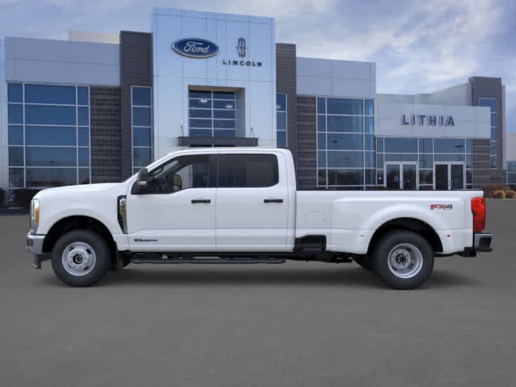 ENGINE: 6.7L 4V OHV POWER STROKE V8 TURBO DIESEL B20 manual push-button engine-exhaust braking and Operator Commanded Regeneration (OCR), 48 Gallon Fuel Tank, 3.55 Axle Ratio, 190 Amp Alternator (Diesel), Dual AGM 68 AH Battery, POWER-SLIDING REAR-WINDOW W/DEFROST, PLATFORM RUNNING BOARDS, XL CHROME PACKAGE 4 pickup box tie-down plates, Halogen Fog Lamps, Chrome Rear Step Bumper, Chrome Front Bumper, LIMITED SLIP W/3.55 AXLE RATIO, TRANSMISSION: TORQSHIFT 10-SPEED AUTOMATIC SelectShift and selectable drive modes: normal, eco, slippery roads, tow/haul and off-road. 2026 Ford Super Duty F-350 DRW Pickup with Oxford White exterior and Medium Dark Slate interior features a 8 Cylinder Engine with 475 HP at 2600 RPM*. Approx. Original Base Sticker Price: $74,300*.