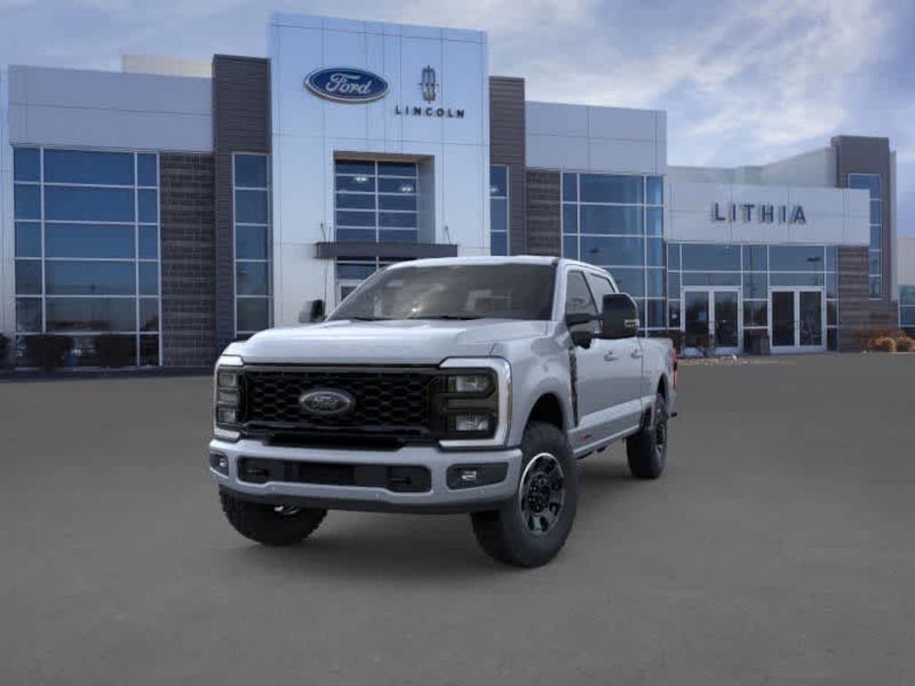 ENGINE: 6.7L HIGH OUTPUT POWER STROKE V8 DIESEL Turbo diesel B20, manual push-button engine-exhaust braking and Operator Commanded Regeneration (OCR), 250 Amp Alternator, 34 Gallon Fuel Tank, GVWR: TBD, 3.31 Axle Ratio, Dual AGM 68 AH Battery, TREMOR OFF-ROAD PACKAGE unique front springs - ride height increase, rear electronic locking differential, front limited slip differential, performance front and rear shock absorbers, unique front air dams w/approach angle improvement, transfer case and axle water fording vent tubes, rock crawl mode, trail control mode and trail turn assist, Tremor Off-Road Decal, Transfer Case & Fuel Tank Skid Plates, Tires: LT285/75R18E BSW Automatic Transmission, Off-road, LT285/75R18E BSW Spare Tire, Textured Matte Finish Off-Road Running Boards, Conventional Road Spare Wheel, Wheels: 18 Ebony Black Machined & Painted Aluminum, BLACK APPEARANCE PACKAGE front and rear black Ford ovals, box side decal (4x4, FX4 or Tremor) and ebony black fender vent surround dark fender badge, Rear Wheel Well Liners (Pre-Installed), Black Painted Front Grille Surround, Ebony Black Painted Mirror Caps, Tough Bed Spray-In Bedliner, tailgate-guard, black box bed tie-down hooks and black bed attachment bolts, Body Color Front & Rear Bumpers, Wheels: 20 Ebony Black High Gloss, Black premium painted aluminum, gloss black hub cover/center ornament, Tires: LT275/65Rx20E BSW Automatic Transmission (4), Spare may not be the same as road tire, 6 Ebony Black Angular Running Boards, LARIAT ULTIMATE PACKAGE Tailgate Step & Handle, Head-Up Display, 4-Way Adjustable Headrests, Power-Deployable Running Boards, Radio: B&O Unleashed Sound System by Bang & Olufsen, HD Radio w/14 speakers including subwoofer, LARIAT PREMIUM PACKAGE Pro Trailer Hitch Assist, Ford Co-Pilot 360 Assist 2.0, rear view camera and reverse brake assist, Pre-Collision Assist, Automatic Emergency Braking (AEB), pedestrian detection, forward collision warning, dynamic brake support and intersection assist, Post-Collision Braking, Lane-Keeping System, lane-keeping alert, lane-keeping aid and driver alert, Front & Rear Parking Sensors, Automatic High Beam, Adaptive Cruise Control w/Stop-and-Go, lane centering and predictive speed assist, Power-Sliding Rear-Window w/Defrost, Pro Trailer Backup Assist, trailer reverse guidance, Lane Departure Warning, TRANSMISSION: TORQSHIFT 10-SPEED AUTOMATIC SelectShift and selectable drive modes: normal, eco, slippery roads, tow/haul and off-road. 2026 Ford Super Duty F-350 SRW Pickup with Glacier Gray Metallic Tri-Coat exterior and Black Onyx interior features a 8 Cylinder Engine with 500 HP at 2600 RPM*.