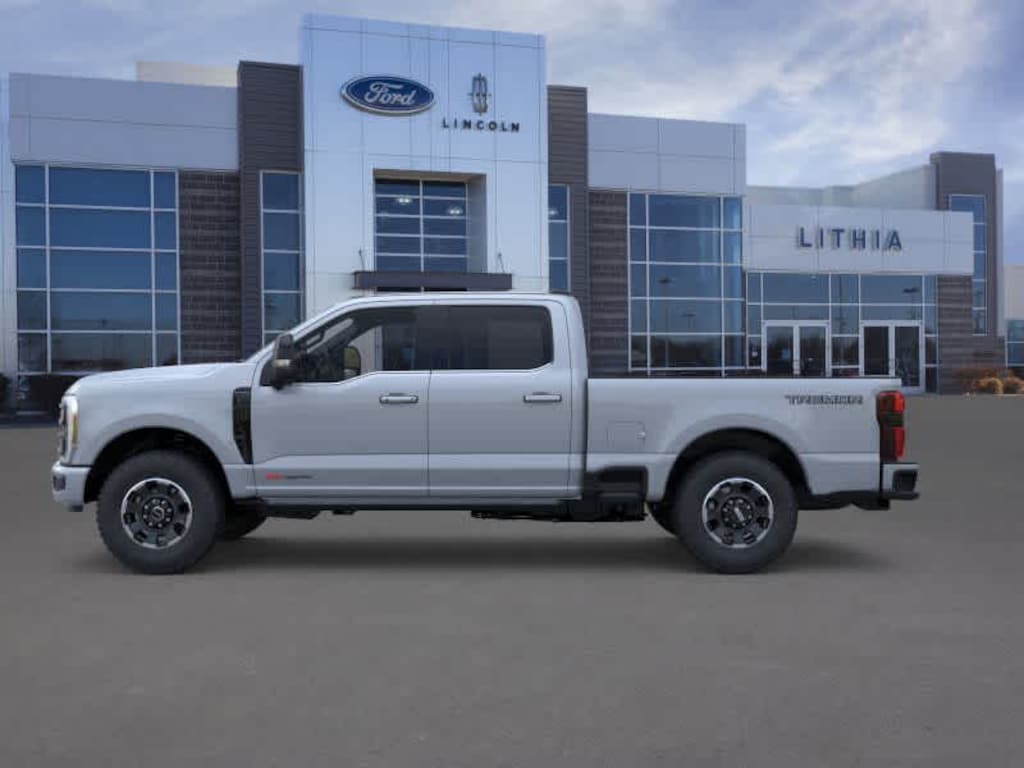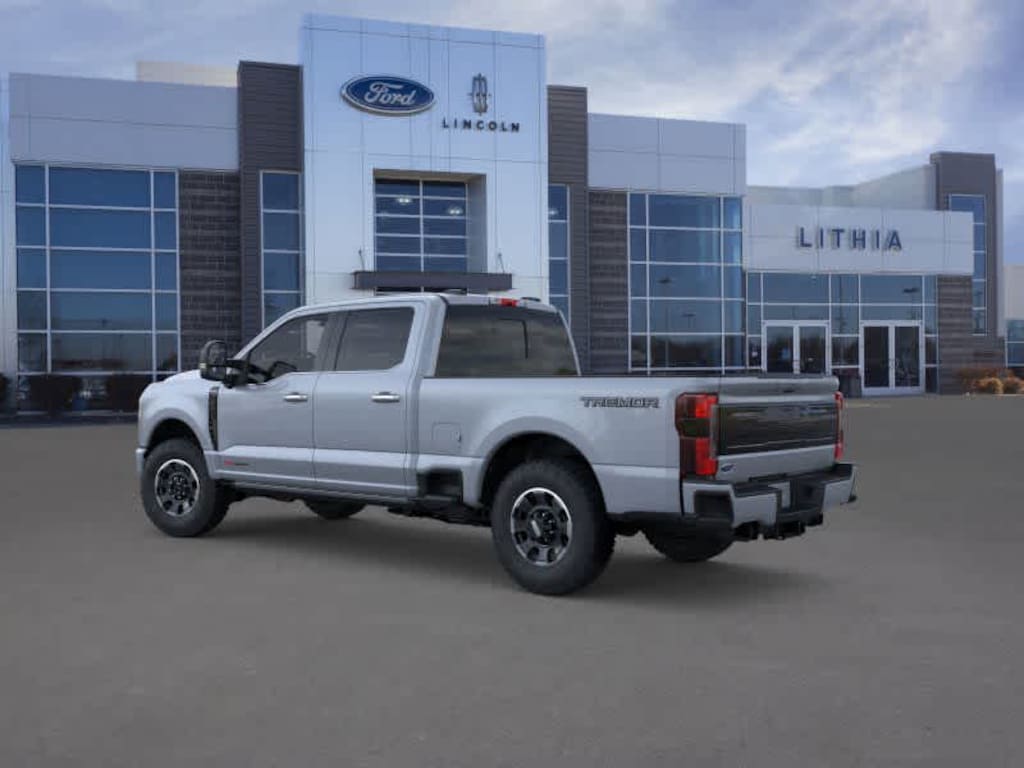 ENGINE: 6.7L HIGH OUTPUT POWER STROKE V8 DIESEL Turbo diesel B20, manual push-button engine-exhaust braking and Operator Commanded Regeneration (OCR), 250 Amp Alternator, 34 Gallon Fuel Tank, GVWR: 12,000 lb Payload Package, 3.31 Axle Ratio, Dual 68 AH AGM 750 CCA Batteries, TREMOR OFF-ROAD PACKAGE unique front springs - ride height increase, rear electronic locking differential, front limited slip differential, performance front and rear shock absorbers, unique front air dams w/approach angle improvement, transfer case and axle water fording vent tubes, rock crawl mode, trail control mode and trail turn assist, Tremor Off-Road Decal, Transfer Case & Fuel Tank Skid Plates, Tires: LT285/75R18E BSW Automatic Transmission, Off-road, LT285/75R18E BSW Spare Tire, Textured Matte Finish Off-Road Running Boards, Conventional Road Spare Wheel, Wheels: 18 Ebony Black Machined & Painted Aluminum, TWIN PANEL POWER MOONROOF map lights and moonroof switches, TOUGH BED SPRAY-IN BEDLINER tailgate-guard, black box bed tie-down hooks and black bed attachment bolts, MAX RECLINE SEATS 10-way power driver and 8-way power passenger and 4-way headrests, TRANSMISSION: TORQSHIFT 10-SPEED AUTOMATIC SelectShift and selectable drive modes: normal, eco, slippery roads, tow/haul and off-road (STD). 2026 Ford Super Duty F-350 SRW Pickup with Glacier Gray Metallic Tri-Coat exterior and Black Onyx interior features a 8 Cylinder Engine with 500 HP at 2600 RPM*. Approx. Original Base Sticker Price: $106,900*.