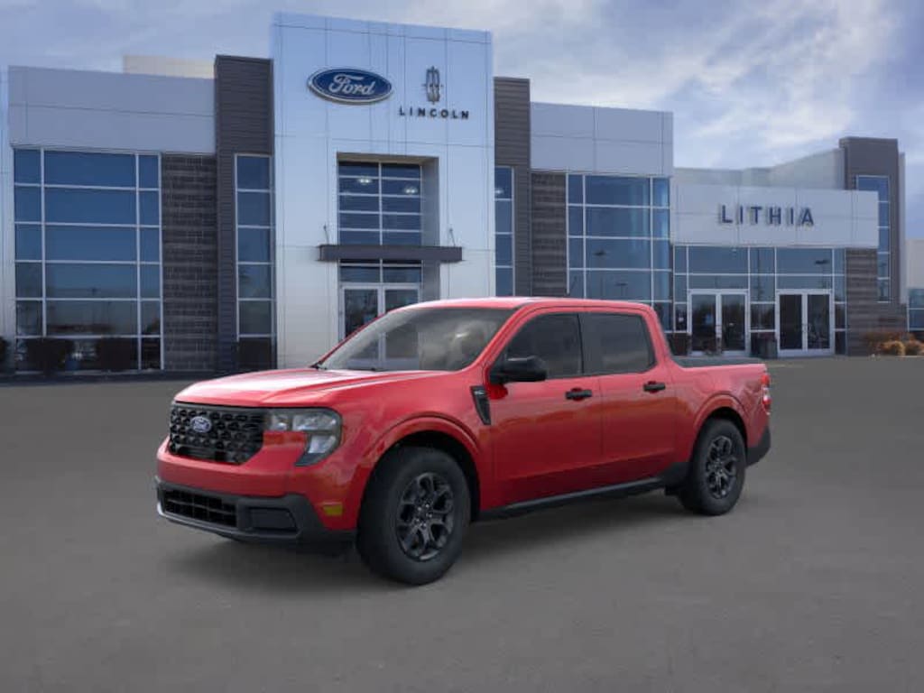 XLT LUXURY PACKAGE Remote Start System, Soft Vinyl Wrapped Heated Steering Wheel, Pro Power Onboard - 400W, Cab and bed includes cubby cover, Heated Mirror w/Painted Black Skull Caps, Heated Seats, 8-way power driver seat, LED Box Lighting, TRANSMISSION: POWER-SPLIT ELECTRIC CVT (STD). 2026 Ford Maverick with Ruby Red Metallic Tinted Clearcoat exterior and Navy Pier/Aspen Gray interior features a 4 Cylinder Engine with 191 HP at 5600 RPM*.