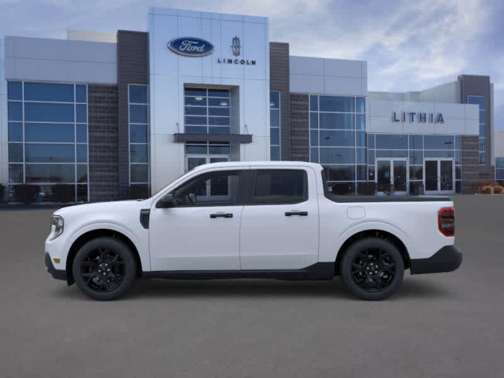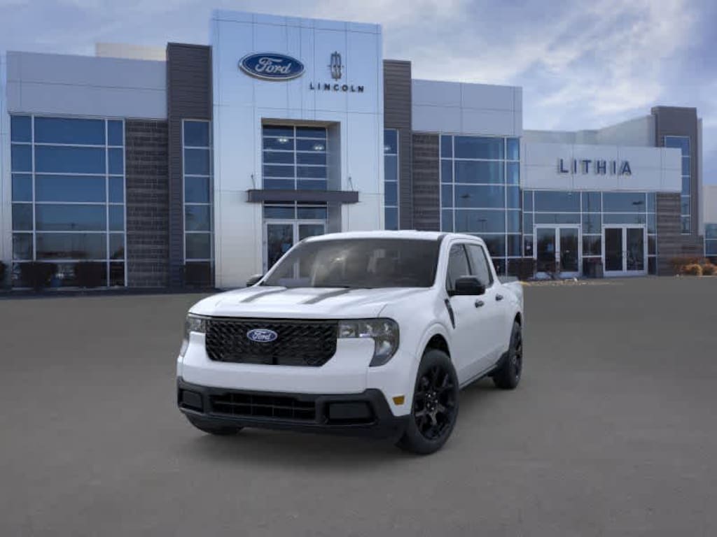 XLT LUXURY PACKAGE Remote Start System, Soft Vinyl Wrapped Heated Steering Wheel, Pro Power Onboard - 400W, Cab and bed includes cubby cover, Heated Mirror w/Painted Black Skull Caps, Heated Seats, 8-way power driver seat, LED Box Lighting, BLACK APPEARANCE PACKAGE black edition hood decal and black painted roof, Overall interior environment theme remains Navy Pier, Tires: 225/55R19, Black Painted Mirrors, Black Interior Accents, Wheels: 19 Black Painted Aluminum, Black Grille, EQUIPMENT GROUP 302A Engine: 2.0L EcoBoost, 3.63 Axle Ratio, Transmission: 8-Speed Automatic. 2026 Ford Maverick with Space White exterior and Black Onyx interior features a 4 Cylinder Engine with 191 HP at 5600 RPM*.