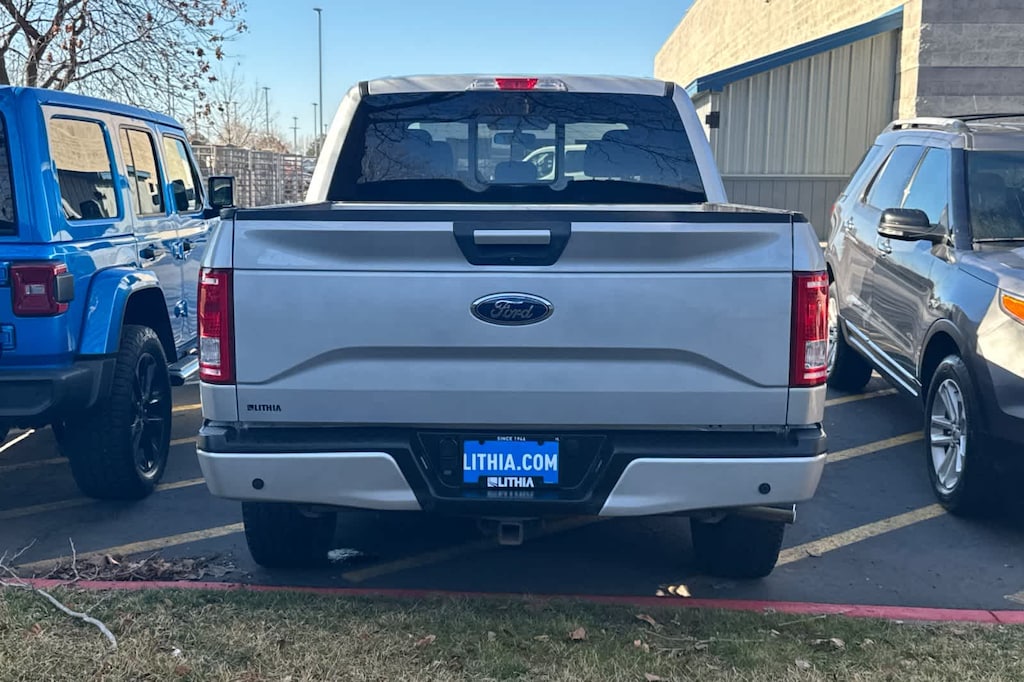 EQUIPMENT GROUP 302A LUXURY Radio: Single-CD w/SiriusXM Satellite, 7 speakers and, Service is not available in Alaska and Hawaii, Subscriptions to all SiriusXM services are sold by SiriusXM after trial period, If you decide to continue service after your trial, the subscription plan you choose will automatically renew thereafter and you will be charged according to your chosen payment method at then-current rates, Fees and taxes apply, To cancel you must call SiriusXM at 1-866-635-2349, See SiriusXM Customer Agreement for complete terms at www.siriusxm.com, All fees and programming subject to change, Sirius, XM and all related marks and logos are trademarks of Sirius XM Radio Inc, BoxLink, 4 premium locking cleats, Rear View Camera w/Dynamic Hitch Assist, ENGINE: 3.5L V6 ECOBOOST auto start/stop, 3.31 Axle Ratio, GVWR: 7,000 lbs Payload Package, MAX TRAILER TOW PACKAGE max towing capability up to 12,200 lbs, and upgraded rear bumper, Note: Ordering the Max Trailer Tow Package does not include Trailer Tow Mirrors, Trailer Tow Mirrors are a standalone option and must be ordered separately, (Option Code: 54M or 54Y/59S), Auxiliary Transmission Oil Cooler, Pro Trailer Backup Assist, tailgate LED and 4.2 LCD productivity screen in instrument cluster, Integrated Trailer Brake Controller, Electronic Locking w/3.55 Axle Ratio, Class IV Trailer Hitch Receiver, towing capability up to 5,000 lbs, on 3.5L Ti-VCT engine (998) and 2.7L EcoBoost engine (99P) or up to 7,000 lbs, on 3.5L EcoBoost engine (99G) and 5.0L V8 engine (99F), smart trailer tow connector and 4-pin/7-pin wiring harness, Extended Range 36 Gallon Fuel Tank, Engine Oil, VOICE-ACTIVATED NAVIGATION SiriusXM Traffic and Travel Link, TRANSMISSION: ELECTRONIC 10-SPEED AUTOMATIC tow/haul mode and sport mode, XLT SPORT APPEARANCE PACKAGE unique interior finish, Box Side Decal, Single-Tip Chrome Exhaust, Tires: P275/65R18 OWL A/S, Body-Color Door & Tailgate Handles, body-color bezel on side doors and black on tailgate, Wheels: 18 6-Spoke Machined-Aluminum, magnetic painted pockets, Accent-Color Step Bars, Body-Color Front & Rear Bumpers, body-color front fascia and wheellip moldings, Black Billet Style Grille w/Body-Color Surround, black mesh insert, TIRES: LT275/65R18C OWL Automatic Transmission. 2017 Ford F-150 with Ingot Silver exterior and Black interior features a V6 Cylinder Engine with 375 HP at 5000 RPM*.