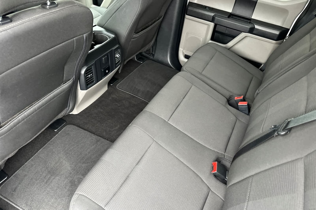 EQUIPMENT GROUP 101A MID 4.2 Productivity Screen in Instrument Cluster, compass, SYNC, enhanced voice recognition communications and entertainment system, 911 assist, 4.2 LCD display in center stack, Applink and 1 smart charging USB port, XL Power Equipment Group, Power Door Locks, flip key and integrated key transmitter keyless-entry (includes Autolock), MyKey, Power Glass Sideview Mirrors w/Black Skull Caps, manual-folding, Power Front & Rear Windows, Power Tailgate Lock, Illuminated Entry, Perimeter Alarm, Cruise Control, STX APPEARANCE PACKAGE Box Side Decals, Fog Lamps, Tires: P275/55R20 BSW AT, 275/65R18 OWL all-season/all-terrain spare tire, SYNC 3, enhanced voice recognition communications and entertainment system, 8 LCD touchscreen in center stack w/swipe capability, AppLink, 911 Assist, Apple CarPlay® and Android Auto® and 2 smart charging USB ports, Wheels: 20 Machined-Aluminum, flash gray painted pockets, Body-Color Surround w/Black Mesh Insert Grille, black mesh insert, Manual Driver/Passenger Lumbar, Rear Window Fixed Privacy Glass, Driver/Passenger Seat Back Pocket, Body-Color Front & Rear Bumpers, body-color front fascia, Rear Window Defroster, ENGINE: 2.7L V6 ECOBOOST auto start-stop technology, 3.55 Axle Ratio, GVWR: 6,600 lbs Payload Package, CLASS IV TRAILER HITCH RECEIVER towing capability up to 6,000 lbs on 3.3L V6 PFDI engine (99B) and 2.7L EcoBoost engine (99P) or up to 7,000 lbs on 3.5L EcoBoost engine (994), 3.5L EcoBoost High Output engine (99G) and 5.0L V8 engine (995), smart trailer tow connector and 4-pin/7-pin wiring harness, TRANSMISSION: ELECTRONIC 10-SPEED AUTOMATIC selectable drive modes: normal/tow-haul/snow-wet/EcoSelect/sport. 2019 Ford F-150 with Oxford White exterior and Black / Medium Earth Gray interior features a V6 Cylinder Engine with 290 HP at 6500 RPM*.