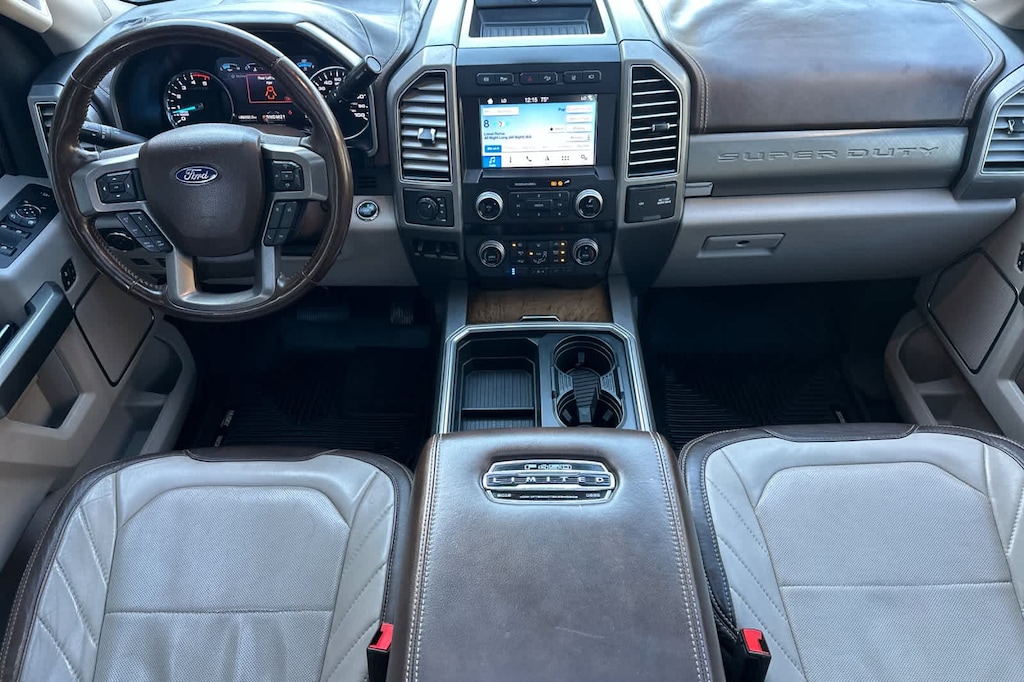 REAR INFLATABLE SEAT BELTS, TRANSMISSION: TORQSHIFT 6-SPEED AUTOMATIC (6R140), SelectShift (STD), ENGINE: 6.7L 4V OHV POWER STROKE V8 TURBO DIESEL B20 manual push-button engine-exhaust braking and intelligent oil-life monitor (STD). 2019 Ford Super Duty F-450 Pickup with White Platinum Metallic Tri-Coat exterior and Camelback interior features a 8 Cylinder Engine with 450 HP at 2800 RPM*.