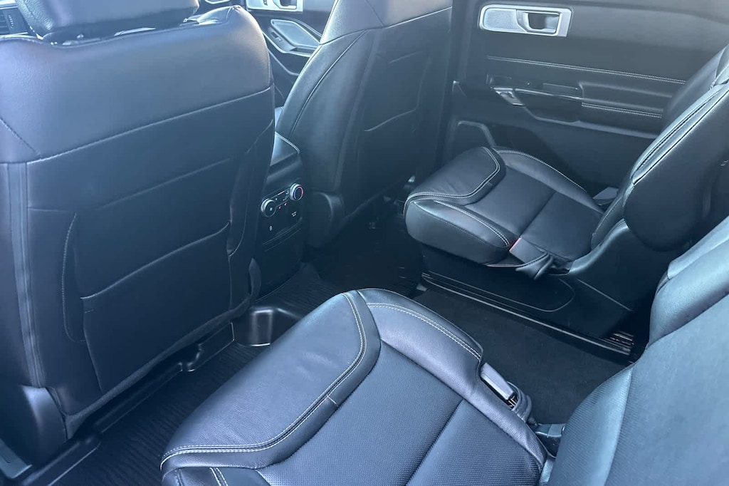 EQUIPMENT GROUP 401A ST High Package, ambient lighting, Memory Drivers Seat, Power Tilt/Telescoping Steering Column, Front Rain-Sensing Wipers, Hands-Free Foot-Activated Liftgate, Reverse Brake Assist, 360-Degree Camera w/Split View, Wireless Charging Pad, 110V/150W AC Power Outlet, Replaces the powerpoint port on the rear side of the center floor console, Radio: B&O Sound System by Bang & Olufsen, MP3 capability, 12 speakers, subwoofer, HD Radio, speed-compensated volume and SiriusXM radio w/a 3 month prepaid subscription, Service is not available in Alaska and Hawaii, Sideview Mirrors w/Gloss Black Caps, power-folding w/Autofold, power and heated glass, LED turn signal indicators, ST projection lamps, drivers side auto-dimming and driver and passenger side memory, Ford Co-Pilot360, TWIN PANEL MOONROOF remote control front windows (opens front windows from outside of the vehicle via the key fob), FRONT & SECOND ROW FLOOR LINERS (16B) standard front and second row black carpet floor mats w/city silver stitching, TRANSMISSION: 10-SPEED AUTOMATIC (STD). 2022 Ford Explorer with Carbonized Gray exterior and Ebony interior features a V6 Cylinder Engine with 400 HP at 5500 RPM*.
