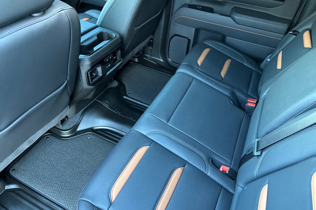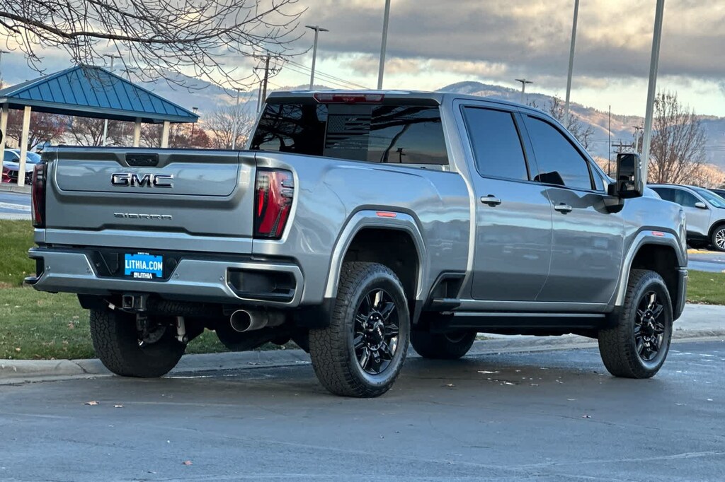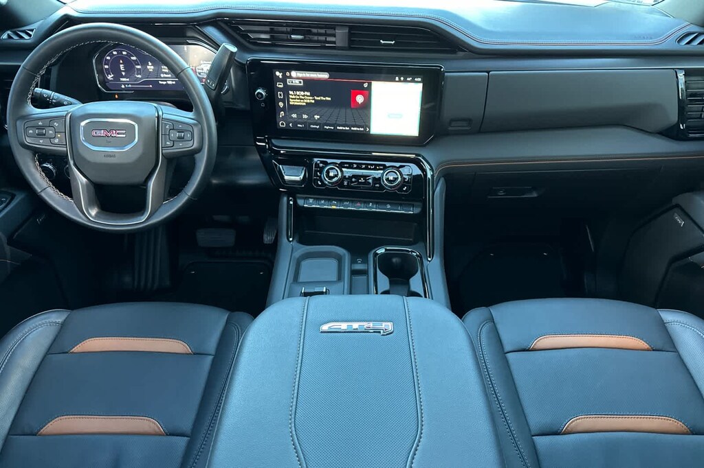 ENGINE, DURAMAX 6.6L TURBO-DIESEL V8, B20-DIESEL COMPATIBLE (470 hp [350.5 kW] @ 2800 rpm, 975 lb-ft of torque [1322 Nm] @ 1600 rpm) (Includes (K05) engine block heater.), ASSIST STEPS, POWER-RETRACTABLE, BLACK includes LED lighting, TECHNOLOGY PACKAGE includes (DRZ) Rear Camera Mirror and (UV6) Multicolor 15 Diagonal Head-Up Display, GOOSENECK / 5TH WHEEL PREP PACKAGE -- Hitch platform to accept Gooseneck or 5th Wheel hitch. Includes hitch platform with tray to accept ball, stamped bed holes with removable caps installed and bed mounted 7-pin trailer harness (similar to UY2 harness). AT4 PREFERRED PACKAGE includes (UG1) Universal Home Remote, (A48) rear sliding power window and (U01) Roof Marker Lamps, AUDIO SYSTEM, 13.4 DIAGONAL PREMIUM GMC INFOTAINMENT SYSTEM with Google built in apps such as navigation and voice assistance, includes color touch-screen, multi-touch display, AM/FM stereo, Bluetooth® streaming audio for music and most phones; featuring wireless Android Auto® and Apple CarPlay® capability for compatible phones. (STD), TRANSMISSION, ALLISON 10-SPEED AUTOMATIC. 2025 GMC Sierra 3500HD with Sterling Metallic exterior and Jet Black with Kalahari accents interior features a 8 Cylinder Engine with 470 HP at 2800 RPM*.