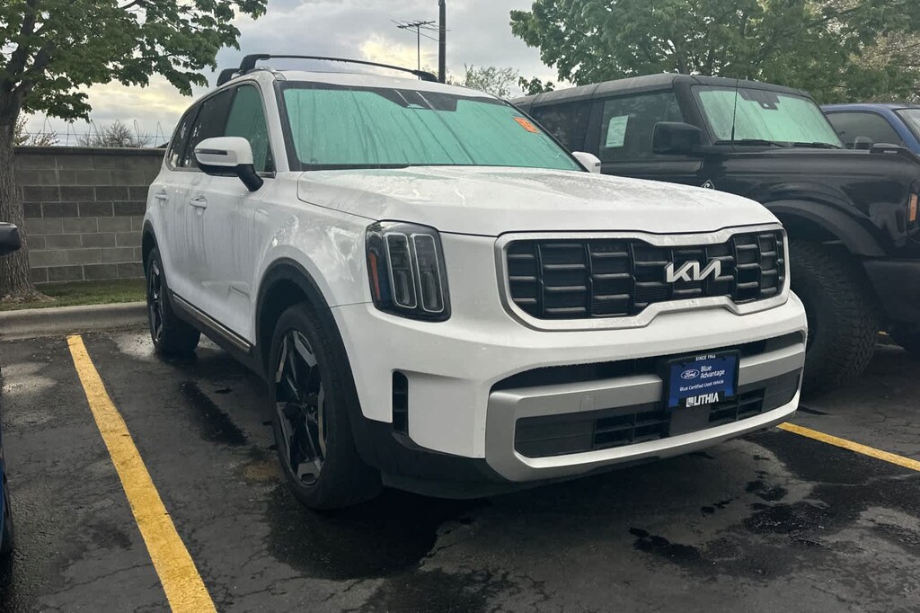 CROSS BARS, CARPETED FLOOR MATS. 2025 Kia Telluride with Glacial White Pearl exterior and Black interior features a V6 Cylinder Engine with 291 HP at 6000 RPM*.